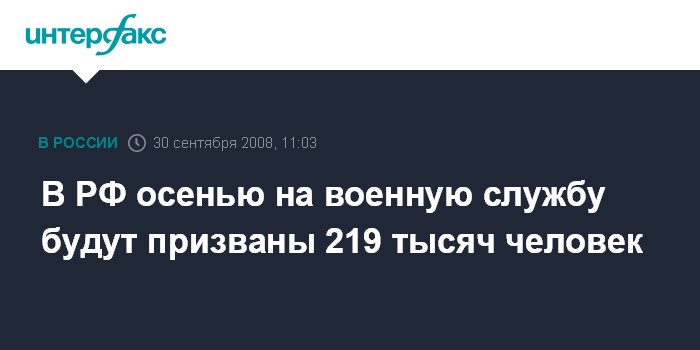 В нем, в частности, сказано, что в период с 1 октября по 31 декабря 2008 года на военную службу будут призваны 219 000 граждан РФ в возрасте от 18 до 27 лет.