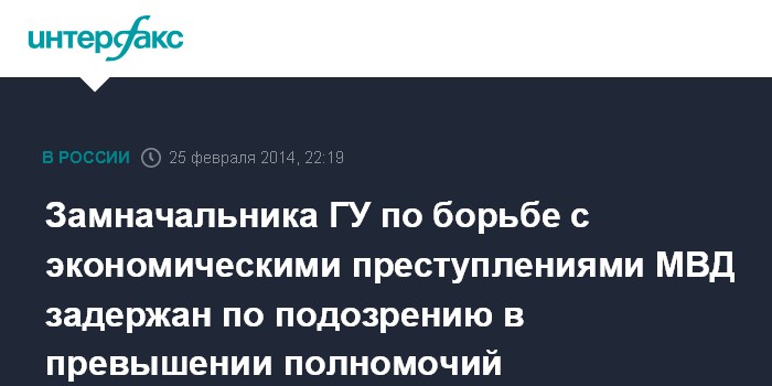 Замначальника ГУ по борьбе с экономическими преступлениями МВД задержан по подозрению в превышении полномочий