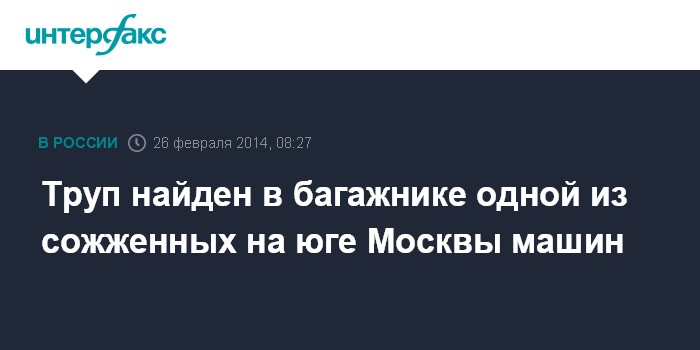 Москва. 26 февраля. INTERFAX.RU - Две машины сгорели на юге столицы, в багажнике одной из них было найдено тело человека, сообщил "Интерфаксу" источник в правоохранительных органах.