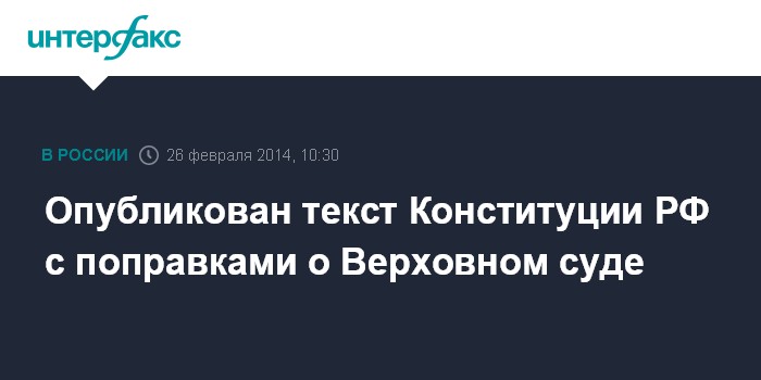 Москва. 26 февраля. INTERFAX.RU - Президент РФ Владимир Путин распорядился официально опубликовать Конституцию России с внесенной в нее поправкой о Верховном суде и прокуратуре.