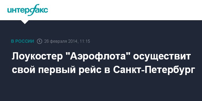 Лоукостер "Аэрофлота" осуществит свой первый рейс в Санкт-Петербург
