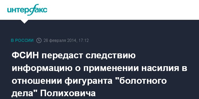 ФСИН передаст следствию информацию о применении насилия в отношении фигуранта "болотного дела" Полиховича