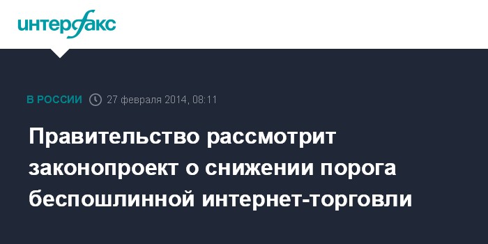 Правительство рассмотрит законопроект о снижении порога беспошлинной интернет-торговли