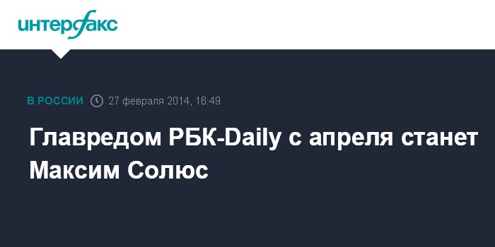 Москва. 27 февраля. INTERFAX.RU - Главным редактором газеты РБК-Daily с 1 апреля станет бывший замглавреда "Ведомостей" Максим Солюс.