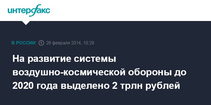 На развитие системы воздушно-космической обороны до 2020 года выделено 2 трлн рублей