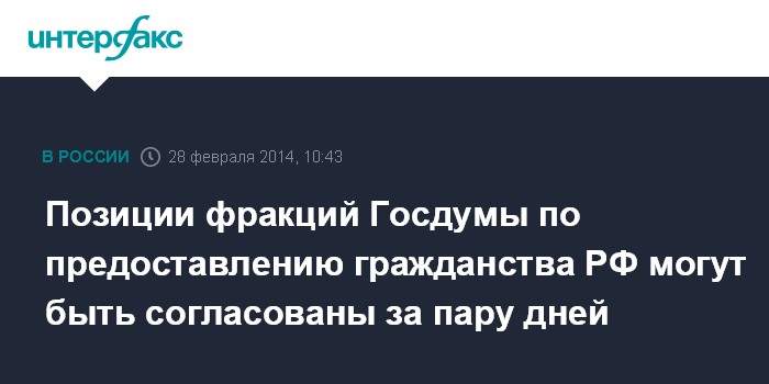 Позиции фракций Госдумы по предоставлению гражданства РФ могут быть согласованы за пару дней