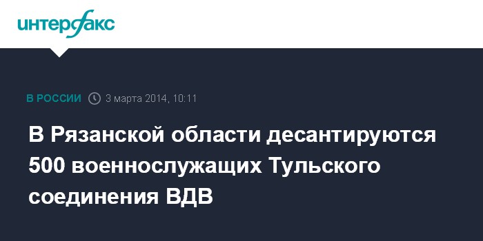 Москва. 3 марта. INTERFAX.RU - Первые в 2014 г. полковые командно-штабные учения с участием парашютно-десантного и зенитного ракетного полков Тульского соединения Воздушно-десантных войск (ВДВ) начались в понедельник, сообщил "Интерфаксу" официальный представитель ВДВ подполковник Евгений Мешков.