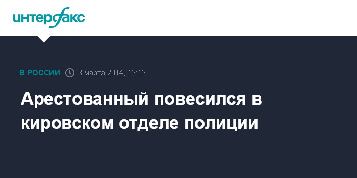 Москва. 3 марта. INTERFAX.RU - В городе Мураши Кировской области выясняются обстоятельства смерти арестованного, который повесился в отделе полиции в ночь на понедельник.