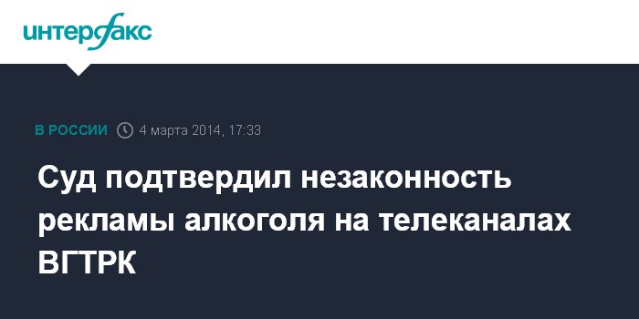 Суд подтвердил незаконность рекламы алкоголя на телеканалах ВГТРК