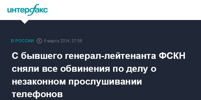 С бывшего генерал-лейтенанта ФСКН сняли все обвинения по делу о незаконном прослушивании телефонов