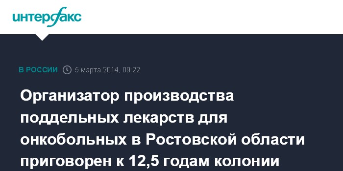 Организатор производства поддельных лекарств для онкобольных в Ростовской области приговорен к 12,5 годам колонии