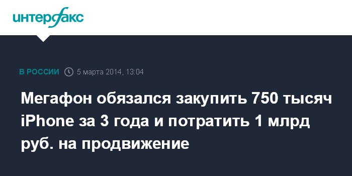 В течение трех лет, до конца 2016 года, "Мегафон" купит 750 тыс. iPhone для последующей продажи в своей розничной сети, говорится в материалах оператора.