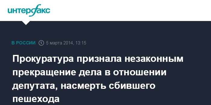 Прокуратура признала незаконным прекращение дела в отношении депутата, насмерть сбившего пешехода