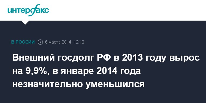 Внешний госдолг РФ в 2013 году вырос на 9,9%, в январе 2014 года незначительно уменьшился