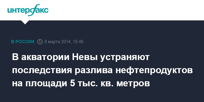Москва. 6 марта. INTERFAX.RU - Разлив нефтепродуктов произошел в акватории Невы и Больший Невки.