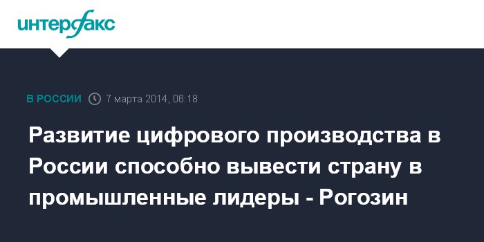 Развитие цифрового производства в России способно вывести страну в промышленные лидеры - Рогозин