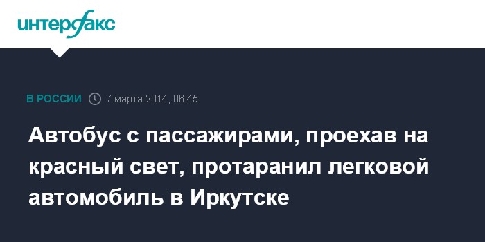 Иркутск. 7 марта. ИНТЕРФАКС-СИБИРЬ - Автобус с пассажирами утром в пятницу врезался в легковой автомобиль в Иркутске, сообщили агентству "Интерфакс-Сибирь" в пресс-службе ГУ МВД РФ по региону.
