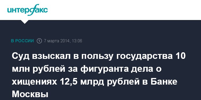 Суд взыскал в пользу государства 10 млн рублей за фигуранта дела о хищениях 12,5 млрд рублей в Банке Москвы