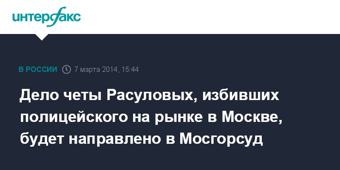 Дело четы Расуловых, избивших полицейского на рынке в Москве, будет направлено в Мосгорсуд