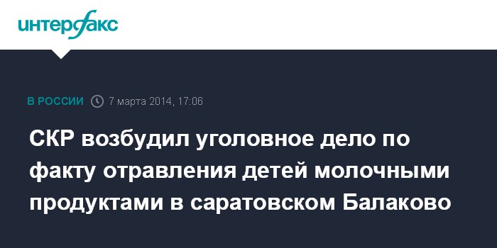 СКР возбудил уголовное дело по факту отравления детей молочными продуктами в саратовском Балаково