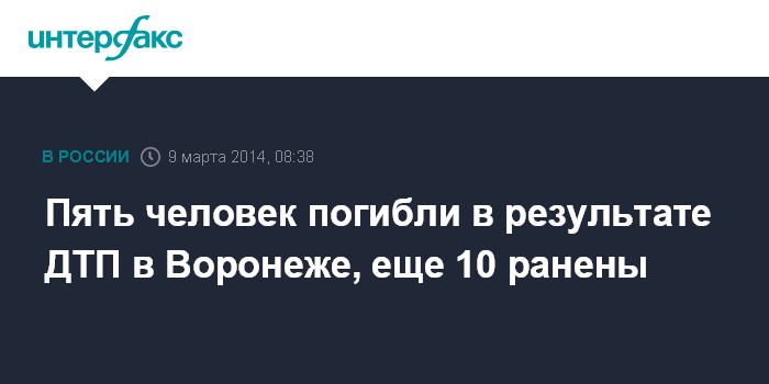 Москва. 9 марта. ИНТЕРФАКС – Пять человек погибли, еще 10 госпитализированы после того, как в толпу людей в Воронеже влетел автомобиль, сообщили «Интерфаксу» в пресс-центре МВД России.