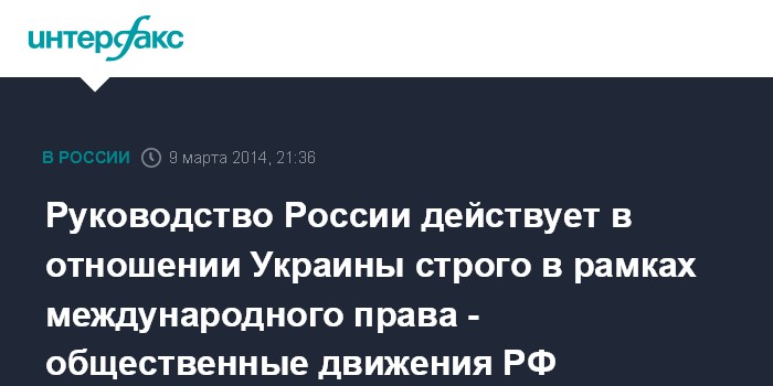 Руководство России действует в отношении Украины строго в рамках международного права - общественные движения РФ