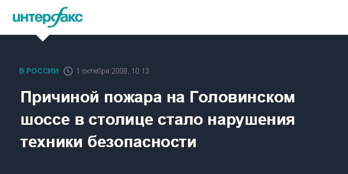 Причиной пожара на Головинском шоссе в столице стало нарушения техники безопасности