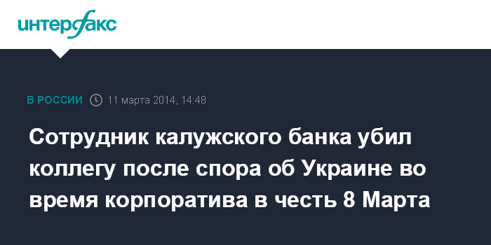 Сотрудник калужского банка убил коллегу после спора об Украине во время корпоратива в честь 8 Марта