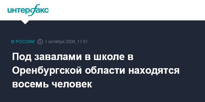 Москва. 1 октября. INTERFAX.RU - В Оренбургской области в школе под завалами обрушившихся лестничных пролетов, по уточненной информации, находятся восемь человек, среди них есть дети, сообщили "Интерфаксу" в управлении информации МЧС РФ