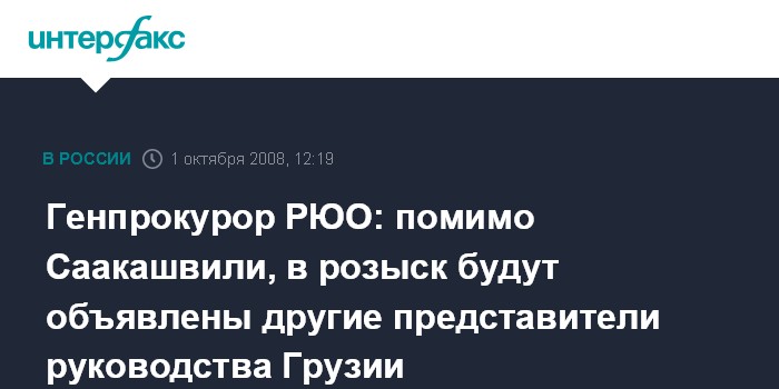 По его словам, в розыск предполагается также объявить "других представителей военного и политического руководства Грузии, в частности, главу Минобороны, МВД, а также командования миротворческой операции от грузинской стороны". "Соответствующие запросы Южная Осетия направит в страны, признавшие это государство, в частности, в Генеральную прокуратуру РФ", - отметил Хугаев.