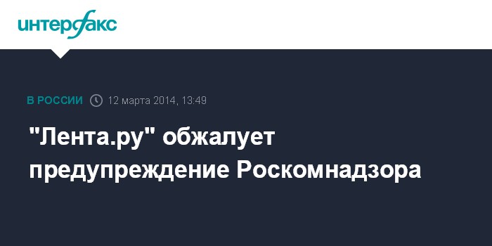 "Лента.ру" обжалует предупреждение Роскомнадзора