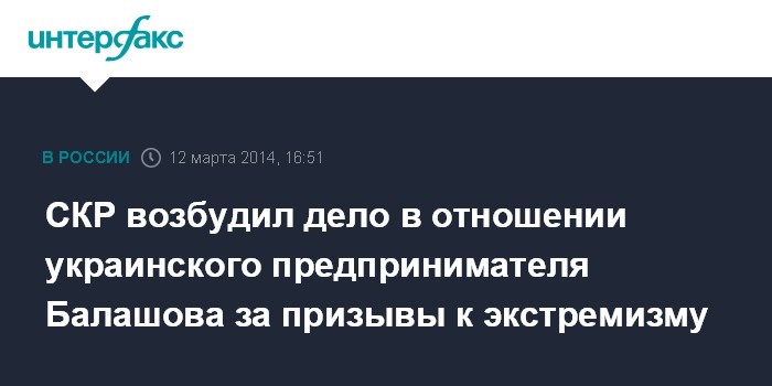 СКР возбудил дело в отношении украинского предпринимателя Балашова за призывы к экстремизму