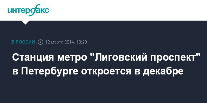 Москва. 12 марта. INTERFAX.RU - Станция петербургского метрополитена "Лиговский проспект" откроется после ремонта в начале декабря, сообщили "Интерфаксу" в пресс-службе ГУП "Петербургский метрополитен" в среду.