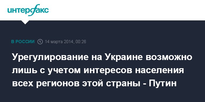 Урегулирование на Украине возможно лишь с учетом интересов населения всех регионов этой страны - Путин