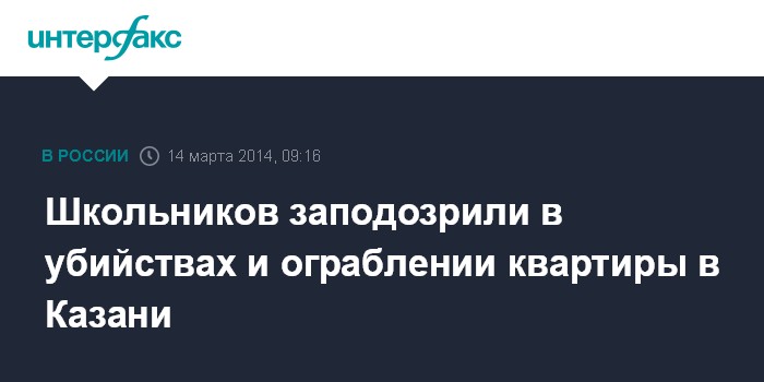 Москва. 14 марта. INTERFAX.RU - Два ученика старших классов и два рецидивиста задержаны в Казани по подозрению в убийстве двух человек и разбое, сообщил "Интерфаксу" источник в правоохранительных органах.