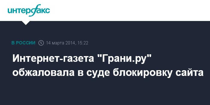 Москва. 14 марта. INTERFAX.RU - Интернет-газета Грани.ру в пятницу направила в Таганский районный суд Москвы жалобу на действия Роскомнадзора и Генпрокуратуры, в результате которых был заблокирован сайт www.grani.ru, сообщил "Интерфаксу" официальный представитель правозащитной организации "Агора" Дмитрий Колбасин.