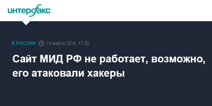 Москва. 14 марта. INTERFAX.RU - Сайт МИД РФ, возможно, подвергся атаке хакеров.