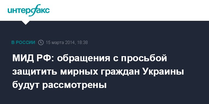 МИД РФ: обращения с просьбой защитить мирных граждан Украины будут рассмотрены