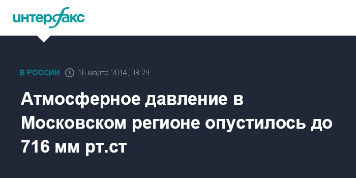 Атмосферное давление в Московском регионе опустилось до 716 мм рт.ст
