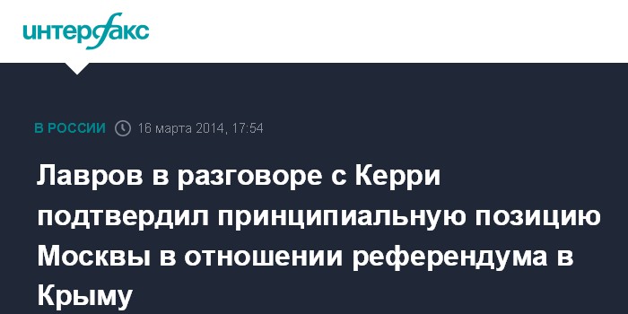 Лавров в разговоре с Керри подтвердил принципиальную позицию Москвы в отношении референдума в Крыму