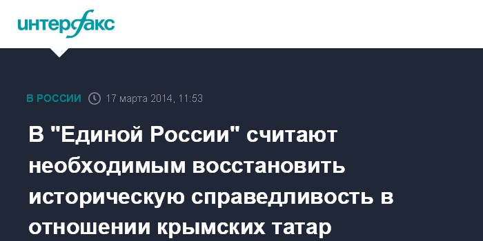 Москва. 17 марта. INTERFAX.RU - При вхождении Крыма в состав РФ нужно восстановить историческую справедливость в отношении крымскотатарского народа, заявил первый заместитель руководителя фракции "Единая Россия" в Госдуме Вячеслав Тимченко.