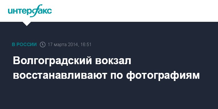 Москва. 17 марта. INTERFAX.RU - Восстановление железнодорожного вокзала "Волгоград-1", пострадавшего от декабрьского взрыва, идет с привлечением архивных материалов.