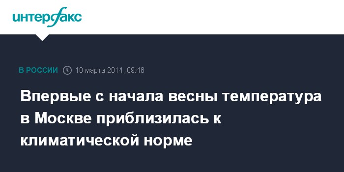 Москва. 18 марта. INTERFAX.RU - Во вторник и среду в Москве после аномально теплого для столицы начала календарной весны температура воздуха приблизится к климатической норме, сообщили "Интерфаксу" в метеобюро Москвы и Московской области.
