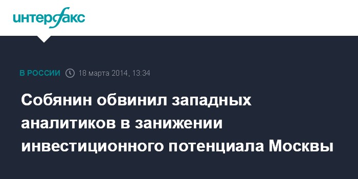 Собянин обвинил западных аналитиков в занижении инвестиционного потенциала Москвы