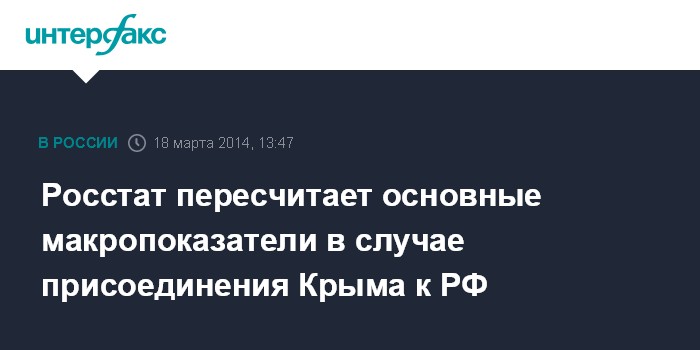 Москва. 18 марта. INTERFAX.RU - Росстат пересчитает динамические ряды по основным макропоказателям как минимум с 2000 года в случае присоединения Крыма к РФ, заявил глава ведомства Александр Суринов на пресс-конференции во вторник в Москве.