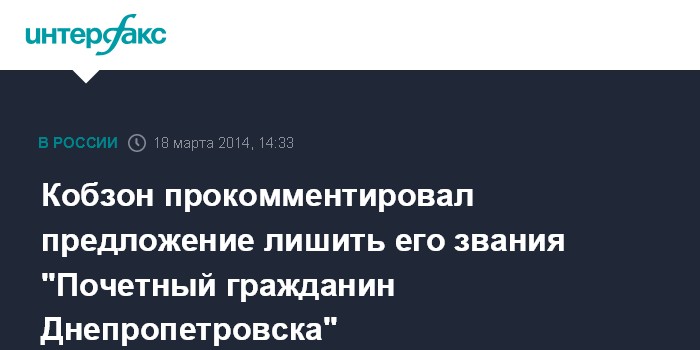 Москва. 18 марта. INTERFAX.RU - Народный артист Украины и СССР, депутат Государственной думы Иосиф Кобзон заявил, что огорчен инициативой жителей Днепропетровска о лишении его звания "Почетный гражданин", но не хотел бы его носить, если к власти в городе придут "националисты и радикалы".