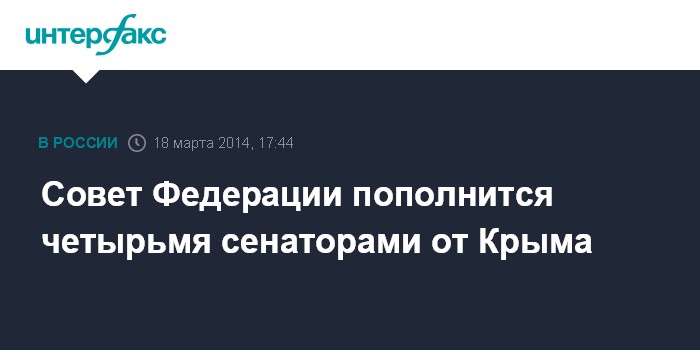 Москва. 18 марта. INTERFAX.RU - В связи с вхождением Крымского полуострова в состав РФ в Совете Федерации ожидают четырех новых сенаторов, сообщил член верхней палаты российского парламента Вадим Тюльпанов.