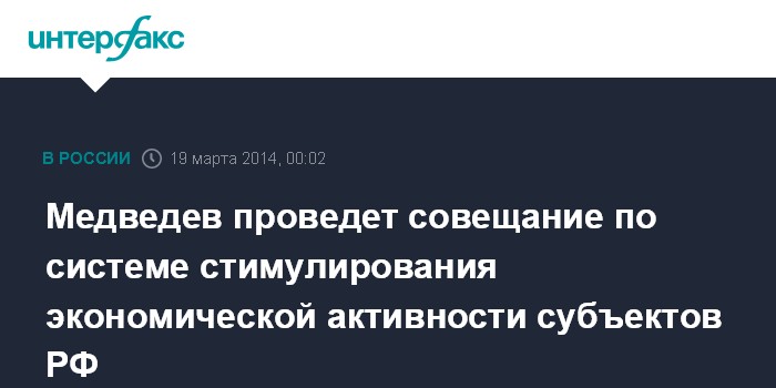 Медведев проведет совещание по системе стимулирования экономической активности субъектов РФ