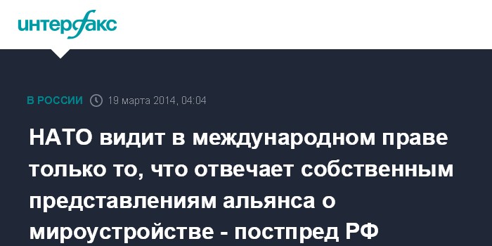НАТО видит в международном праве только то, что отвечает собственным представлениям альянса о мироустройстве - постпред РФ