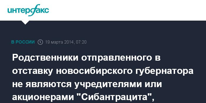 Родственники отправленного в отставку новосибирского губернатора не являются учредителями или акционерами "Сибантрацита", заявляют в компании